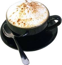 "gatal" tangan campur cappucino dalam mug penuh berisi nestum.